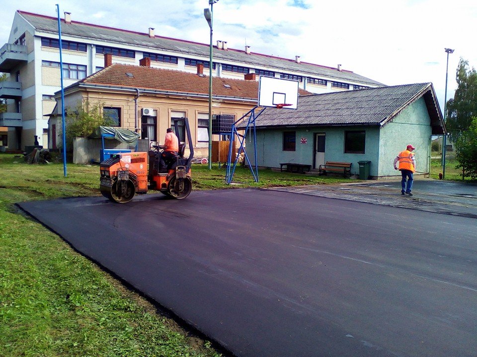 Prvi koraci u izradi igrališta – asfaltiranje.