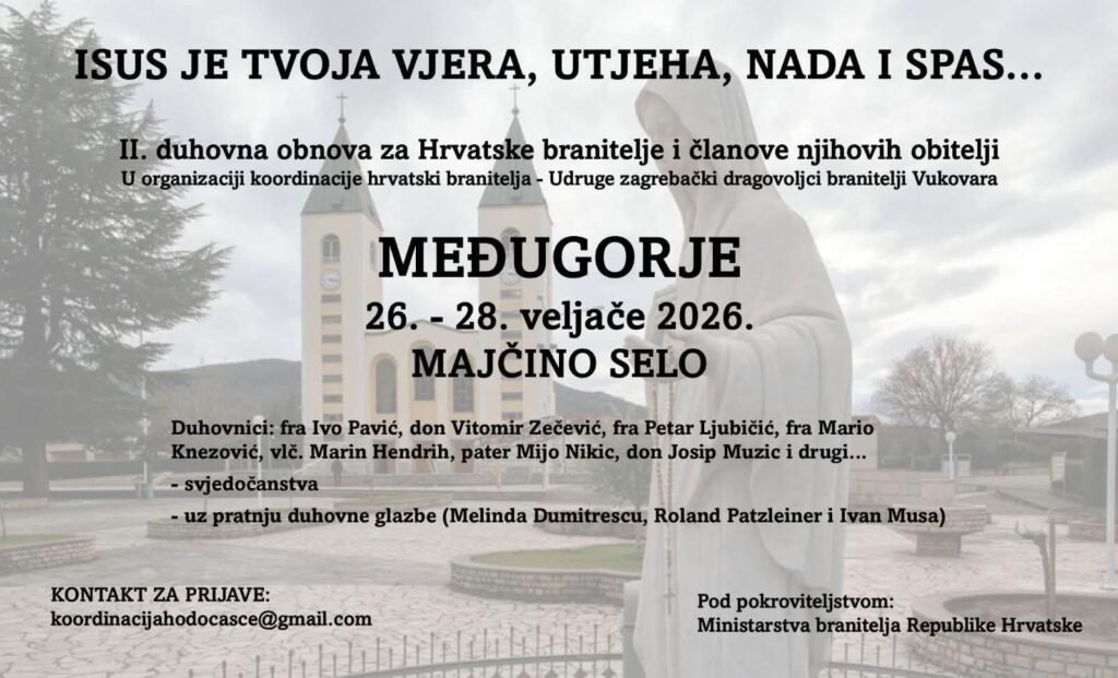 Udruga veterana 7. gardijske brigade “PUMA” poziva na II. duhovnu obnovu za hrvatske branitelje i članove njihovih obitelji koja će se održati od 26.-28.2.2026. u Međugorju.