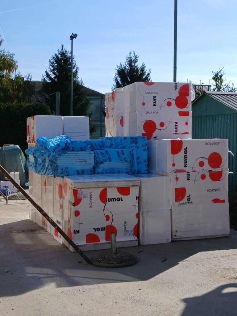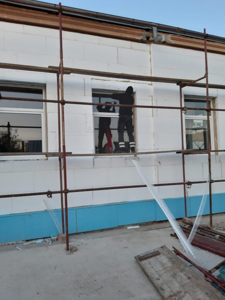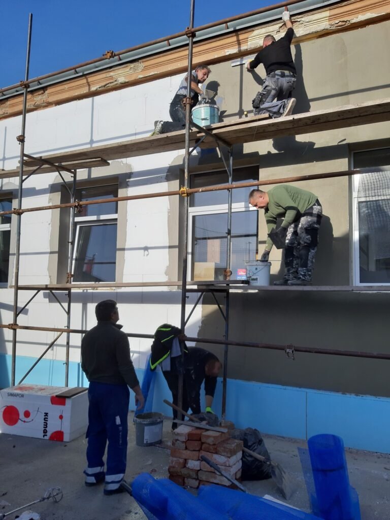 Trenutna faza radova uključuje postavljanje toplinske izolacije – lijepljenje stiropora i stirodura, čime se osigurava dugotrajna energetska učinkovitost i bolja toplinska zaštita objekta.