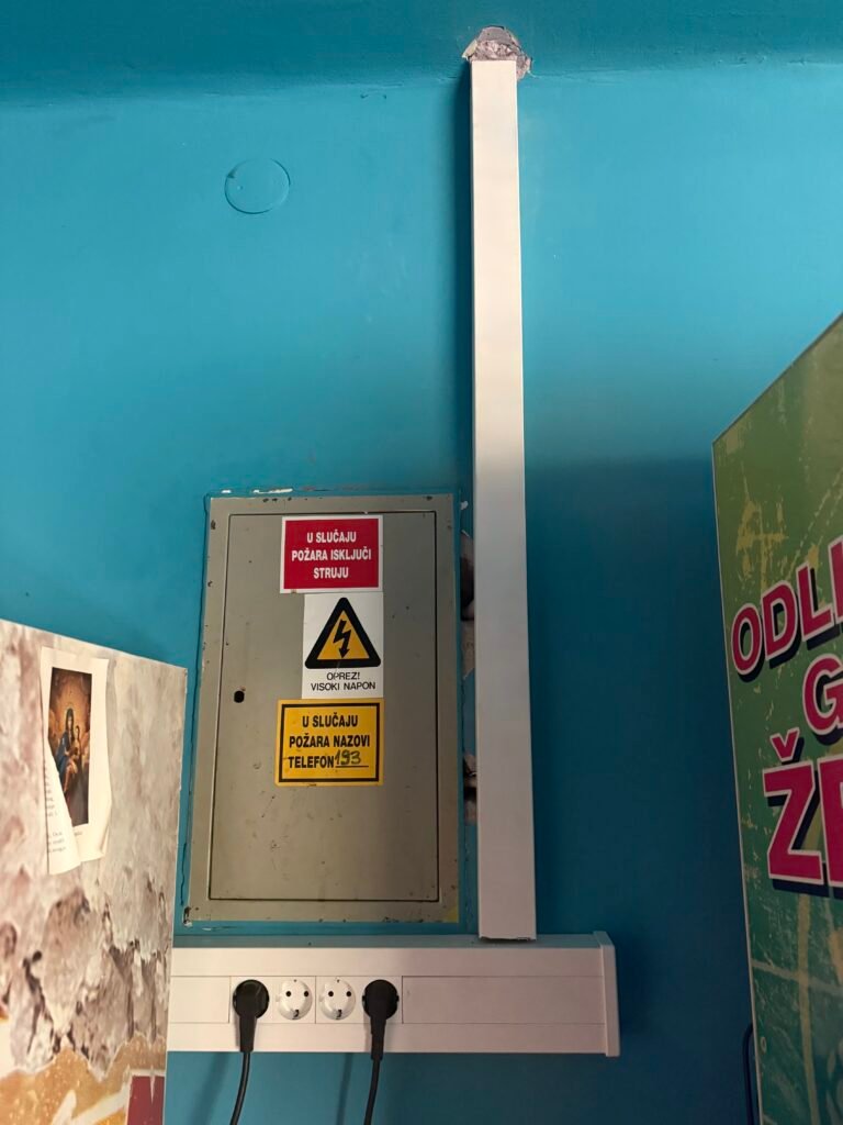 U sklopu obnove objekta izvršili smo zamjenu dotrajalih električnih instalacija te ugradili nove automatske osigurače i sklopke. Na ovaj način povećana je sigurnost, pouzdanost i funkcionalnost elektro sistema centra.