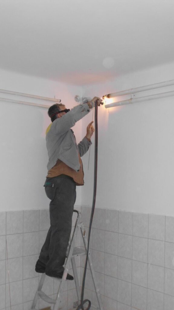 Priprema i slaganje spojnih cijevi i sistema grijanja u predjelu šanka.