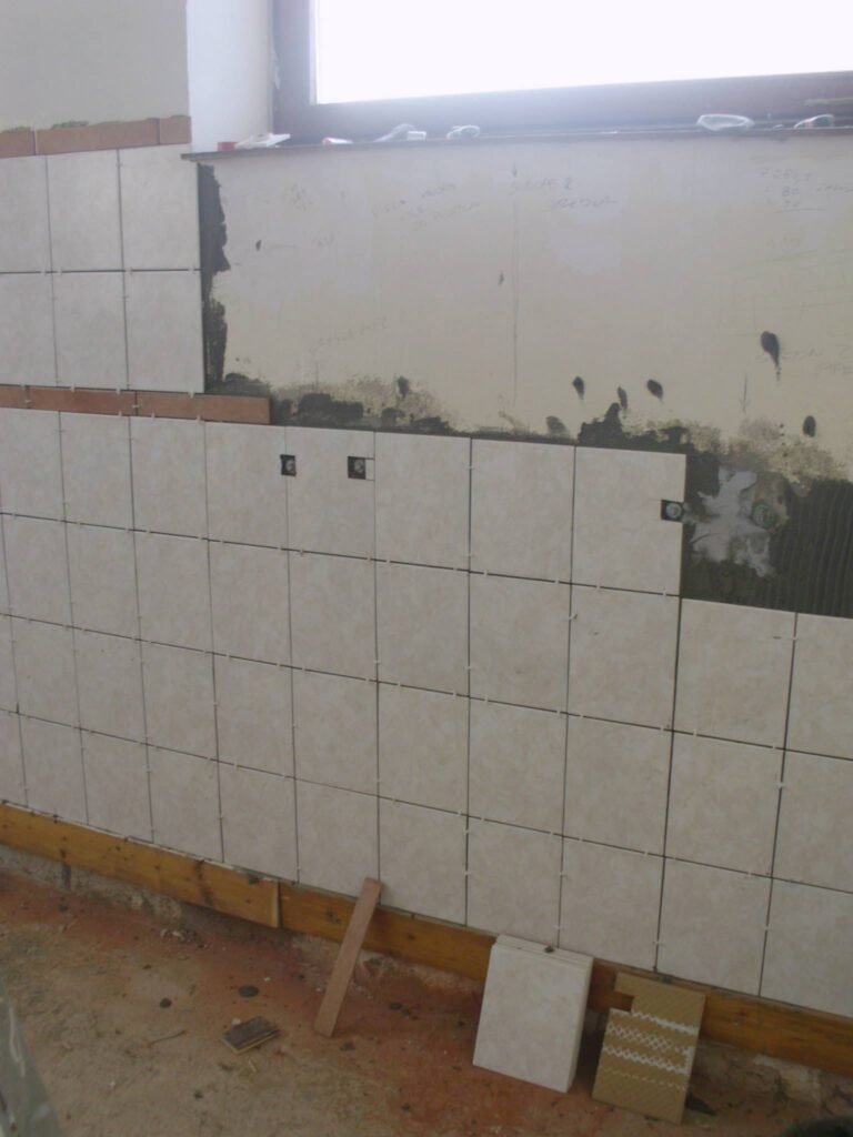 Nakon postavljanja vodovodnih instalacija u kuhinji, na red je stiglo popločavanje zidova.