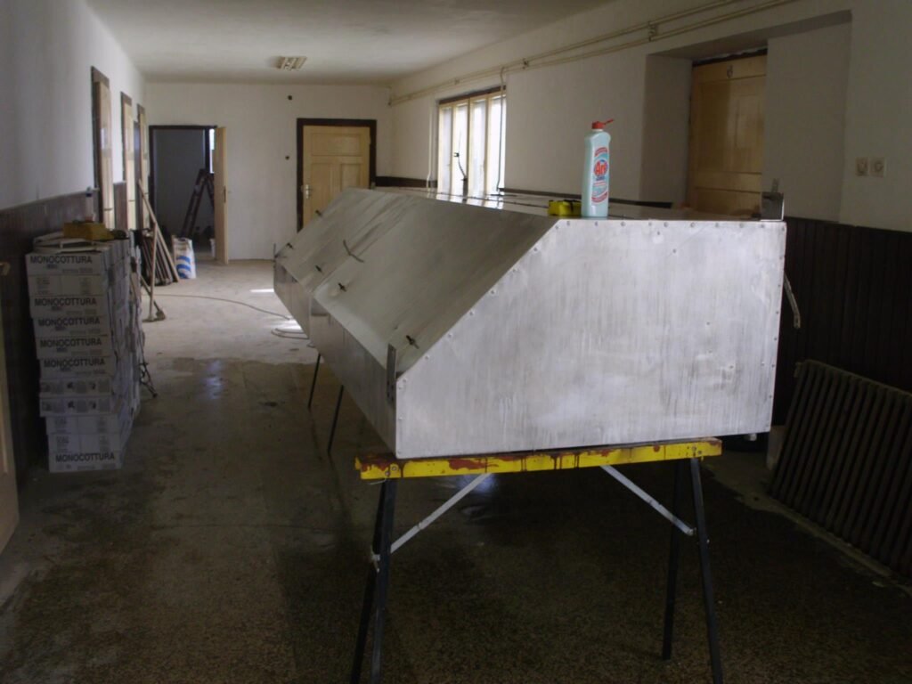 Nakon što se odradila priprema za napu, na red je stiglo čišćenje donirane nape, bojanje oronulih dijelova nape te finalno postavljanje nape.