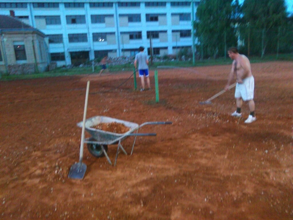 Po završetku čišćenja i ravnanja terena odradilo se valjanje terena. Idući je korak posipavanje završnog sloja tenisita.