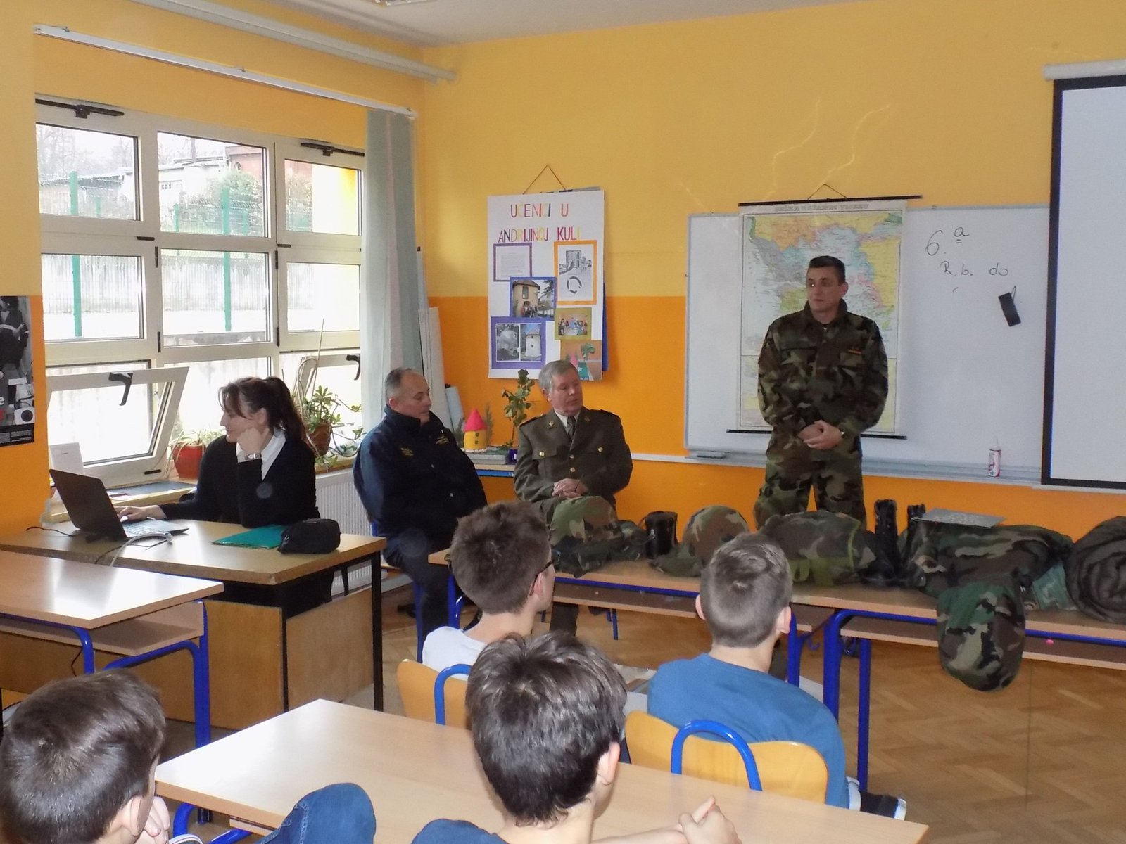 Izlagači ovog predavanja bili su već dobro uigrani tim; Vladimir Milavec, Franjo Mušić i Damir Laljek, a nakon izlagačkog djela djeca su postavljala pitanja, razgledali te isprobali vojnu opremu koja im je bila na raspolaganju i tokom predavanja.